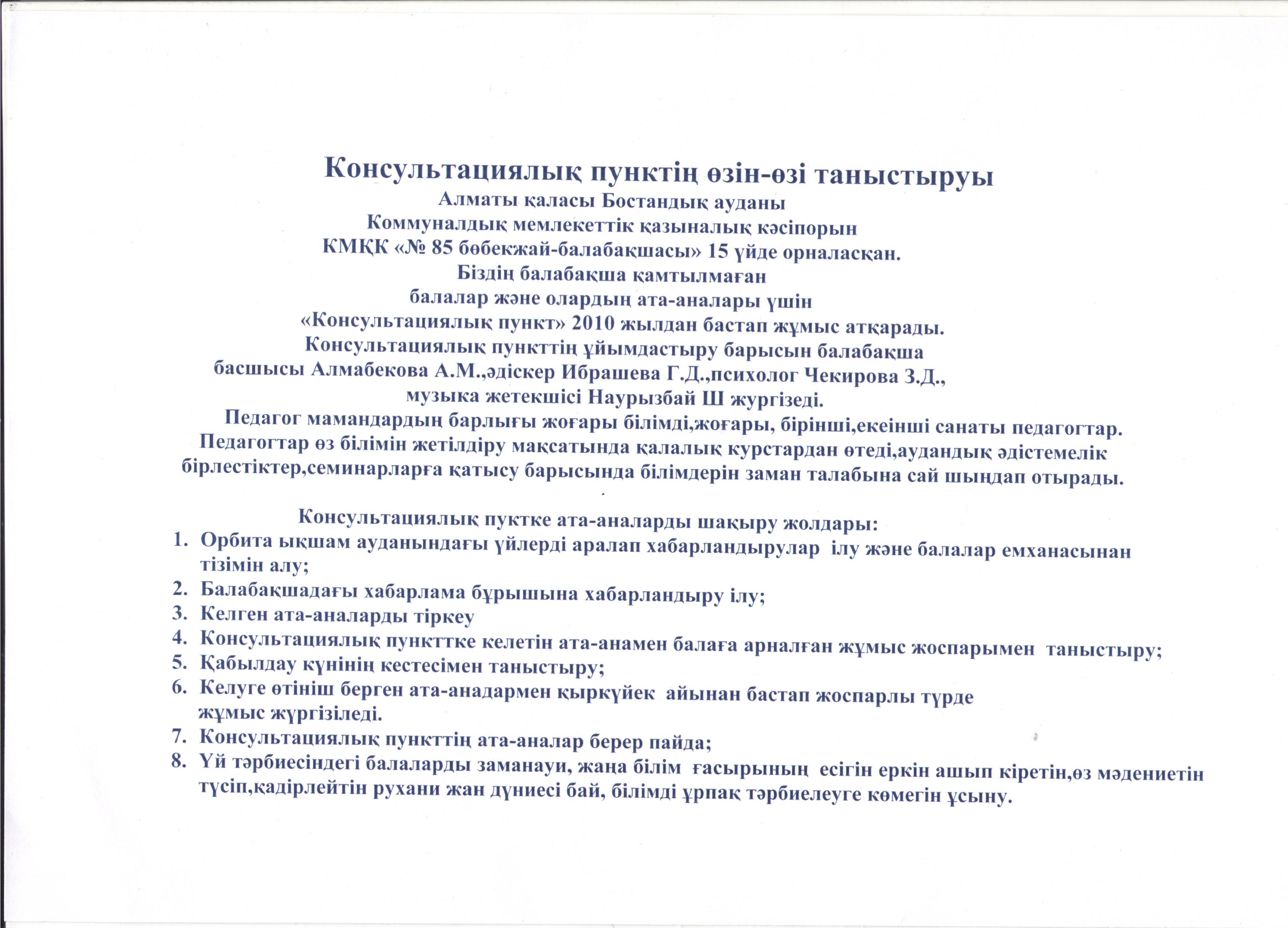 Консультациялық пунктің өзін-өзі таныстыруы » КГКП "Ясли сад №85"