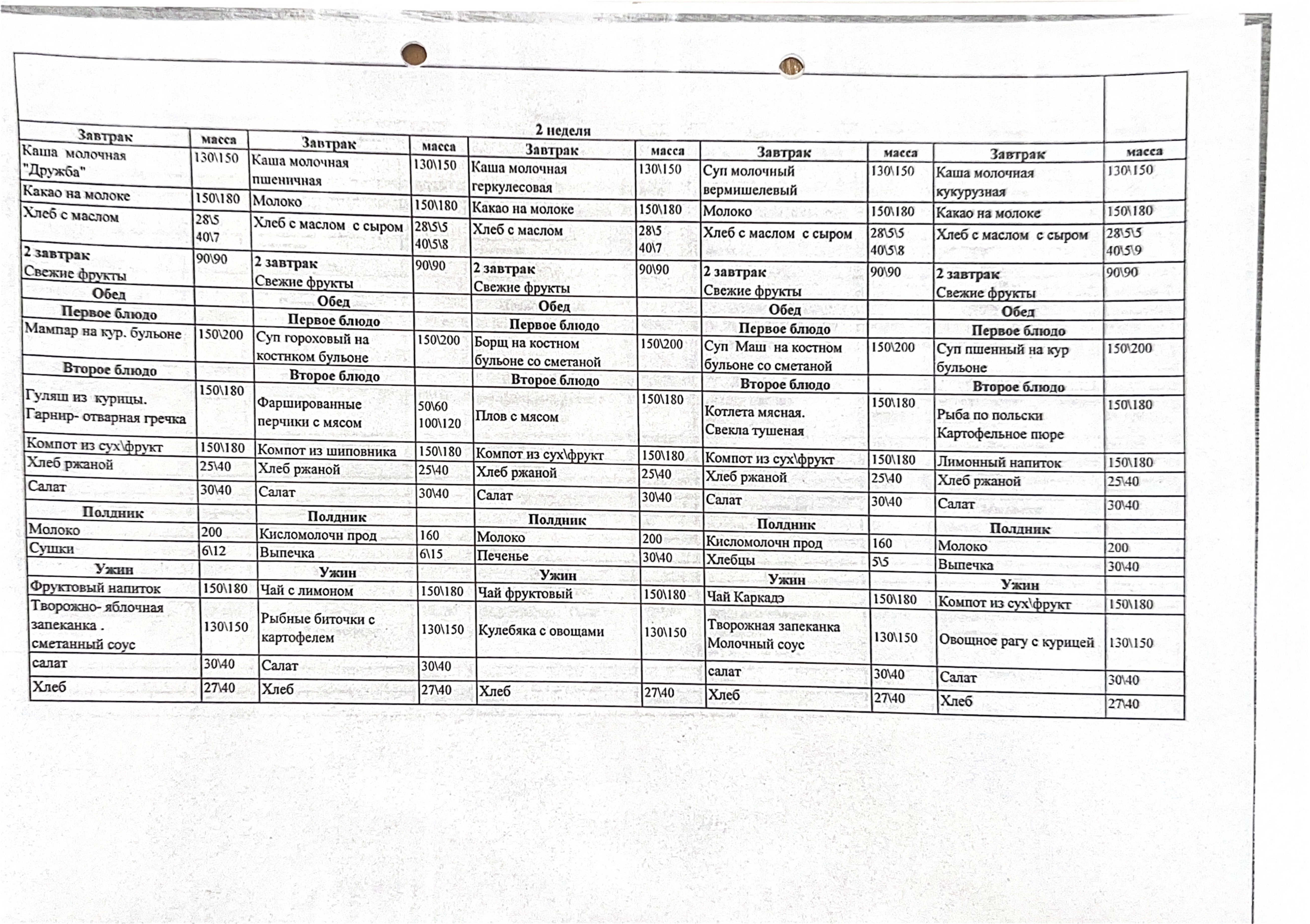 Перспективное четырехнедельное меню Лето - Осень на 2025-2026 год » КГКП "Ясли сад №85"